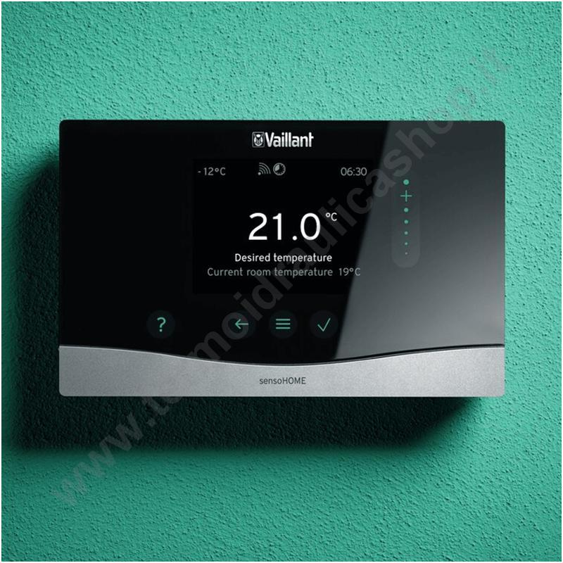 La programmazione delle funzioni è coadiuvata da «messaggi parlanti» e i tasti, tutti “touch-screen” rendono l’esperienza di comfort ancora più gradevole. Ideata per essere abbinata alle caldaie Vaillant, sensoHOME è compatibile anche con con tutte le caldaie eBUS a partire dal 2003. La gestione in remoto è possibile con l’aggiunta del gateway internet sensoNET a cui è associata un’APP di ultima evoluzione. sensoHOME è in classe V ai sensi della comunicazione della Commissione 2014/C 207/02, abbinata a una caldaia a condensazione in classe A da’ l’accesso ad ecobonus 65% e superbonus 110%